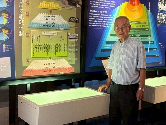 渡辺さんは、今も同大で登戸研究所の講義を担当している。そして同じく資料館開設に尽力した山田朗・同大文学部教授(同資料館館長)とともに、市民や学生向けに資料館などの案内を月に1回は行っている。